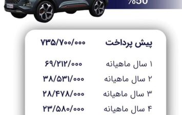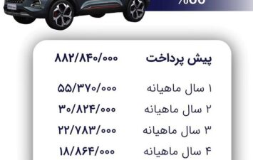 طرح فروش اقساطی X55 پرو با اقساط 12 الی 60 ماهه و امکان پیش پرداخت 50 الی 80 درصد با قیمت قطعی 1 میلیارد و 253 میلیون 800 هزار تومان آغاز شد، این شرایط فروش مدیران خودرو برای عموم آزاد می باشد و تمامی افراد واجد شرایط می توانند اقدام به خرید این خودرو کنند.